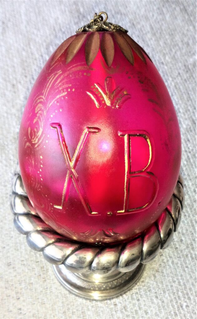 Carskie jajko świąteczne z XIX wieku – szkło rubinowe, ręcznie malowane szkłem i złocone. Wspaniale dekorowane jajka były często dawane jako wielkanocne prezenty