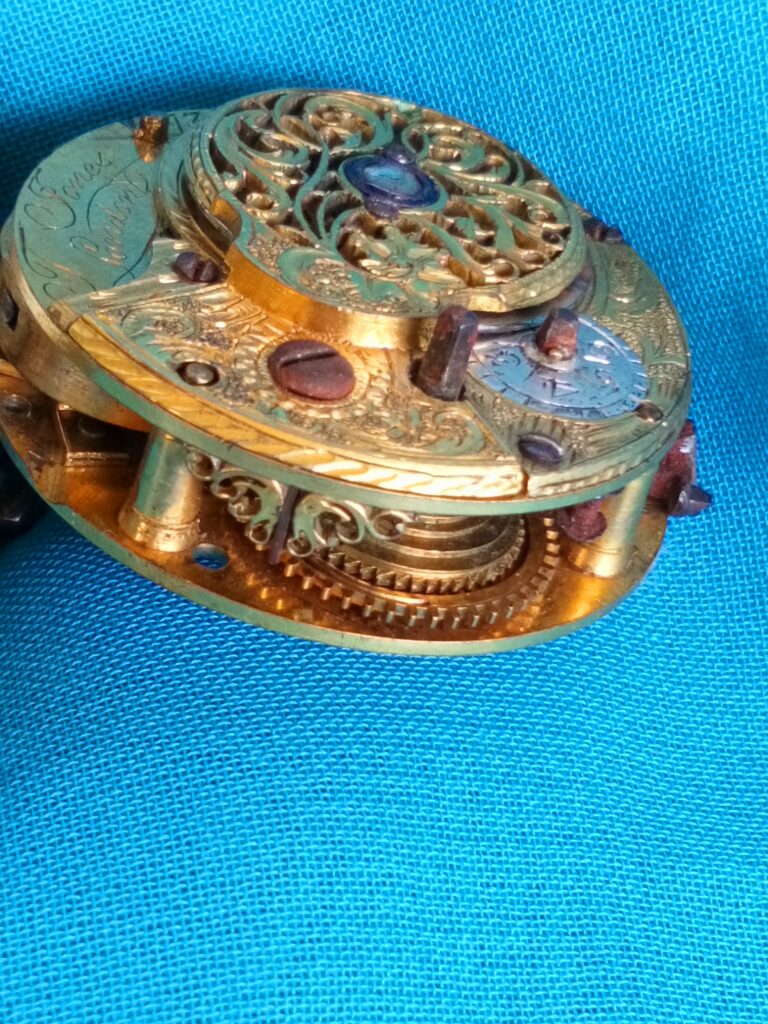 Ciekawy mechanizm zegarka kieszonkowego (na kluczyk) wykonany przez mistrz z XIX w, w Londynie
