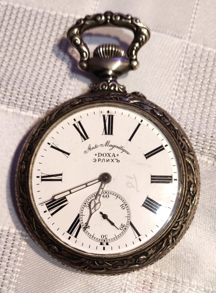 Zegarek kieszonkowy ,,DOXA” , Szwajcaria, metalowy posrebrzany , początek XX wieku