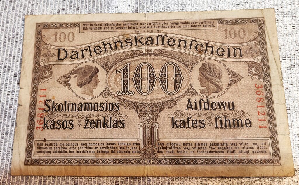 100 MAREK 1918, Darlehnskassenschein Ost, KOWNO (niemiecka okupacja terenów wschodnich)