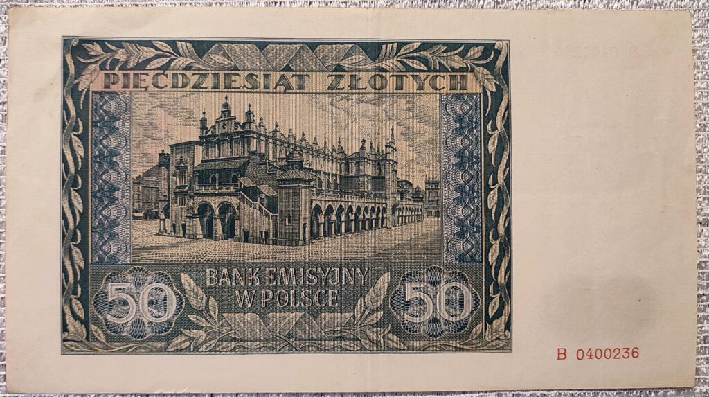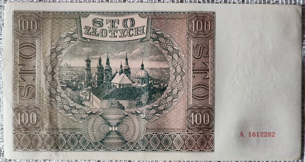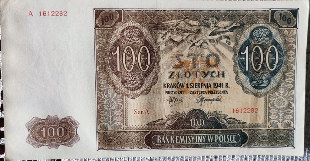 Polski banknot 100 złotych z 1941 r. Kraków, Bank Emisyjny w Polsce, seria A