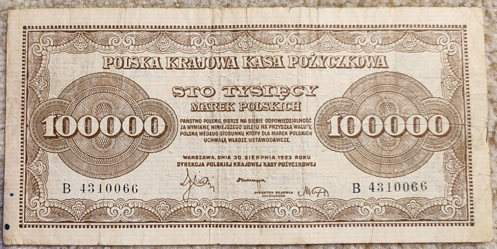 POLSKA KRAJOWA KASA POŻYCZKOWA – 100 000 MAREK POLSKICH – WARSZAWA, 3O SIERPNIA 1926 ROKU