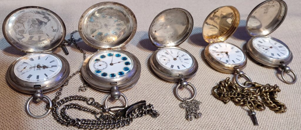 Zegarki kieszonkowe wysokiej precyzji z końca XIX i początku XX wieku. Zegarki tego typu były używane przez pracowników kolei