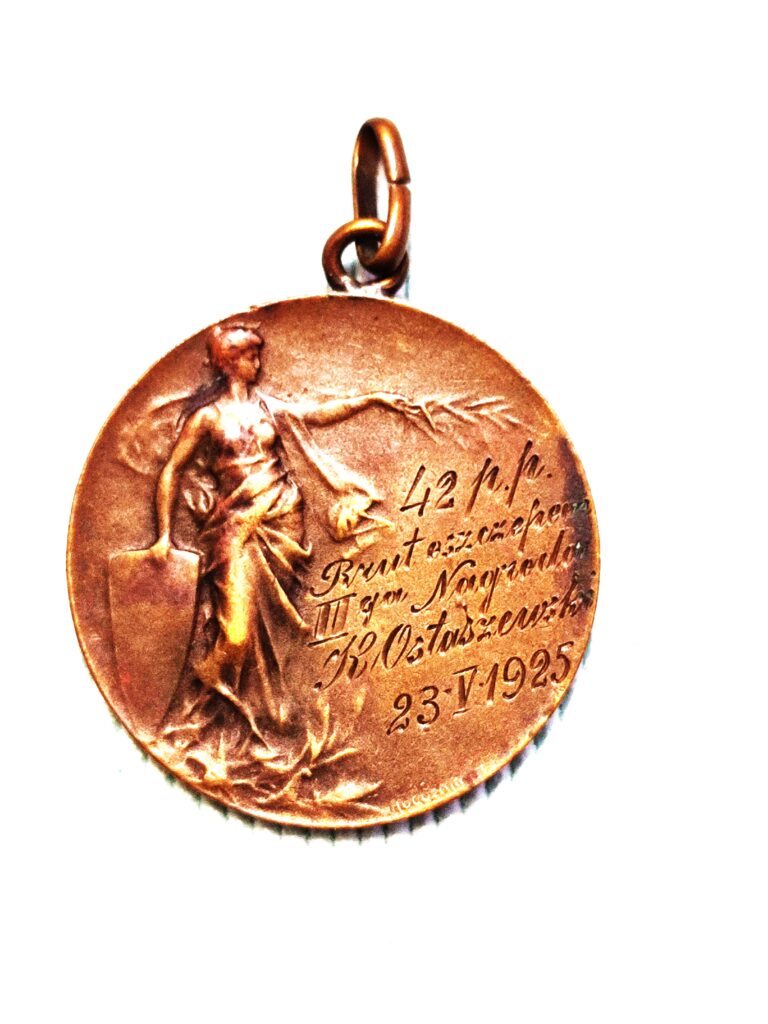 Stary, wileński ryngraf patriotyczny. Piękne secesyjne zdobienia, srebrny z miejscowym pozłacaniem